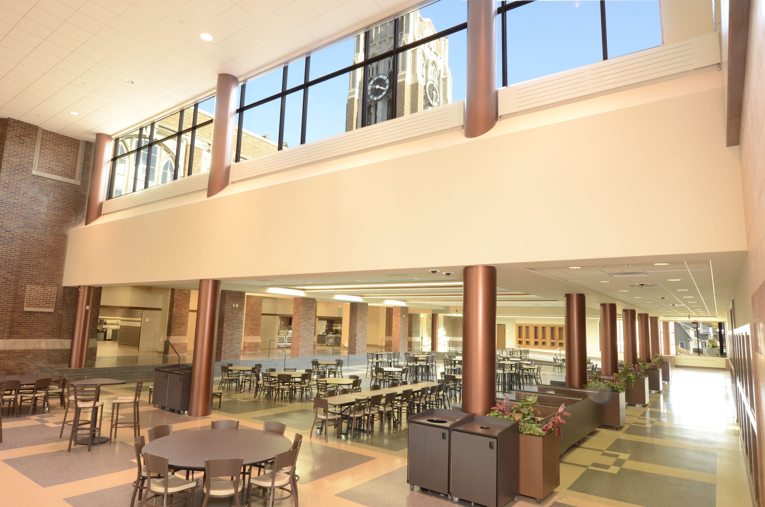A central commons provides multi-use gathering space for students, faculty and community. Within the commons, a state-of-the-art food service venue provides “food court” type serving with a variety of menus. The inviting space also doubles as the main lobby and gathering space for the historic Denfeld Auditorium.