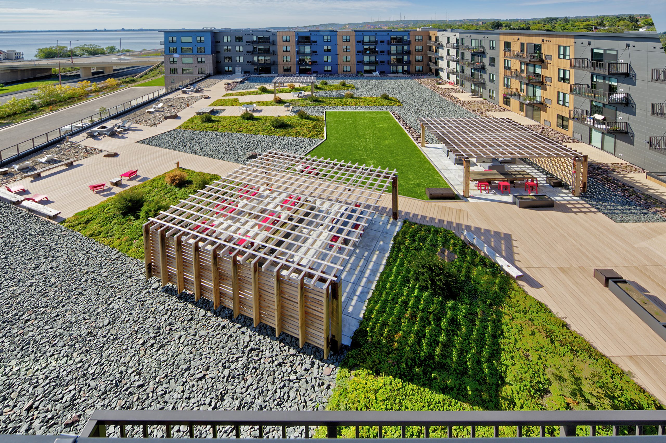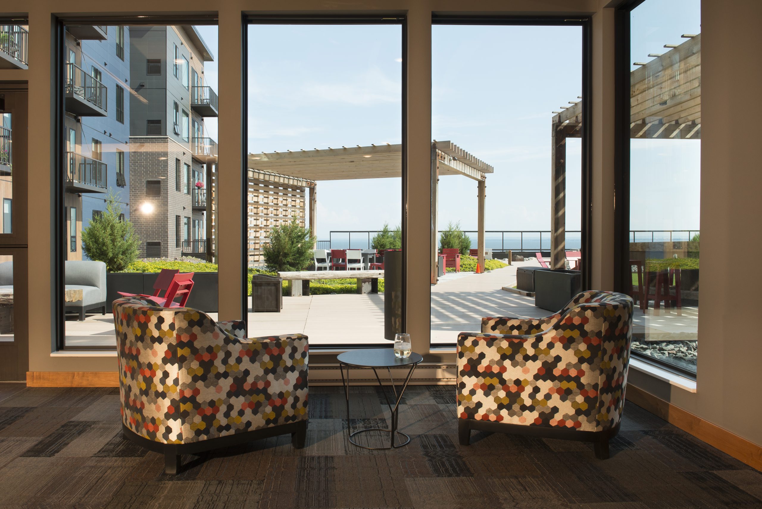 The first high-end apartment complex to hit the Duluth market offers outdoor amenities including a large deck facing Lake Superior with lounge seating, fire pits, lawn games and an outdoor exercise area. Indoor amenities include a fitness room, coffee bar, book nook, tech bar with computer stations, art gallery featuring local artists and a club room with a communal lounge, fireplace and kitchen for entertaining. The 18,000 sf retail space fronting London Road has ample parking for residents and consumers.
