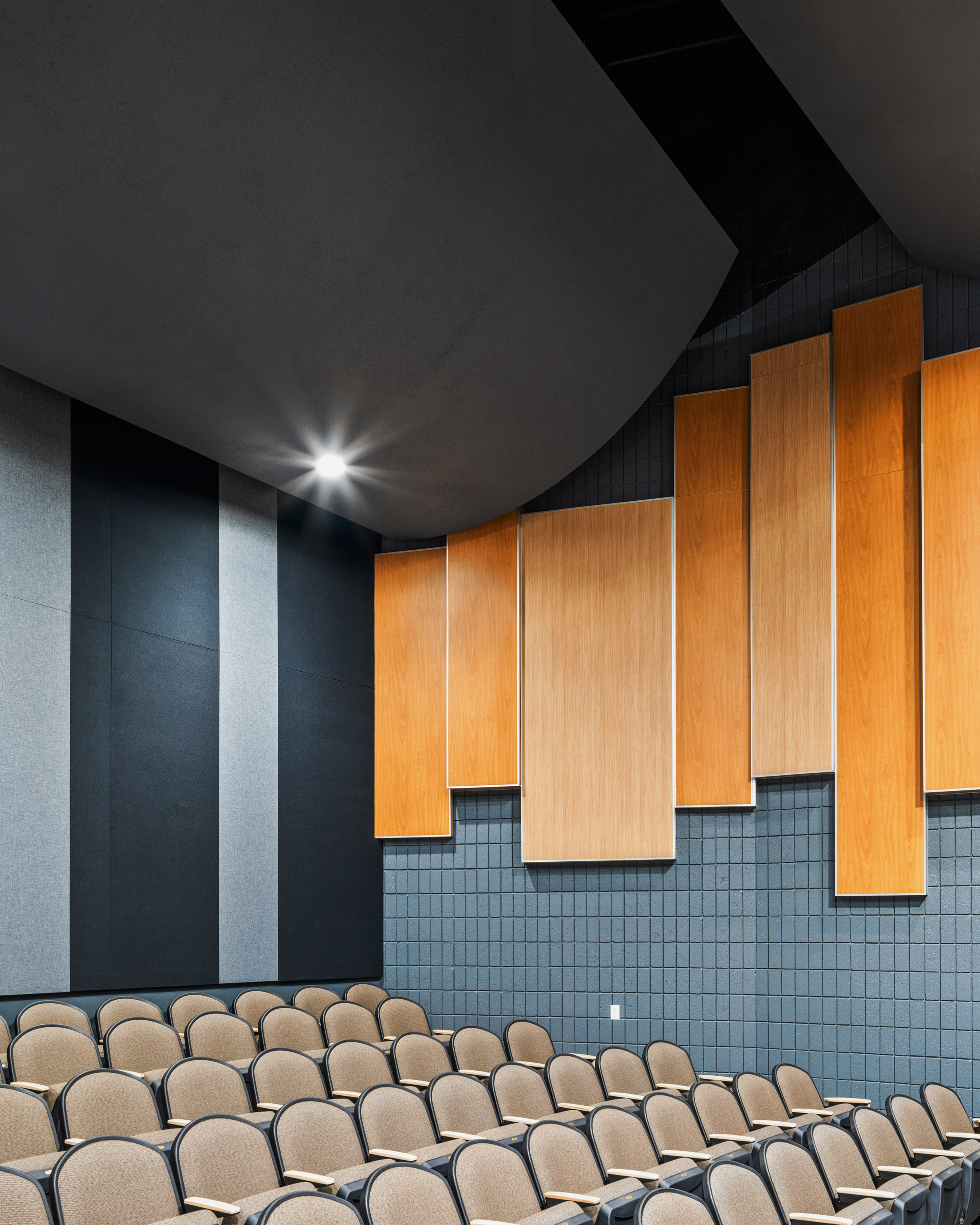 In addition to aesthetic and functional improvements, significant acoustic enhancements were made in the auditorium. Chris and his team worked closely with an acoustical consultant to create a design that allows performances and presentations to be clearly heard without the need for excessive amplification.