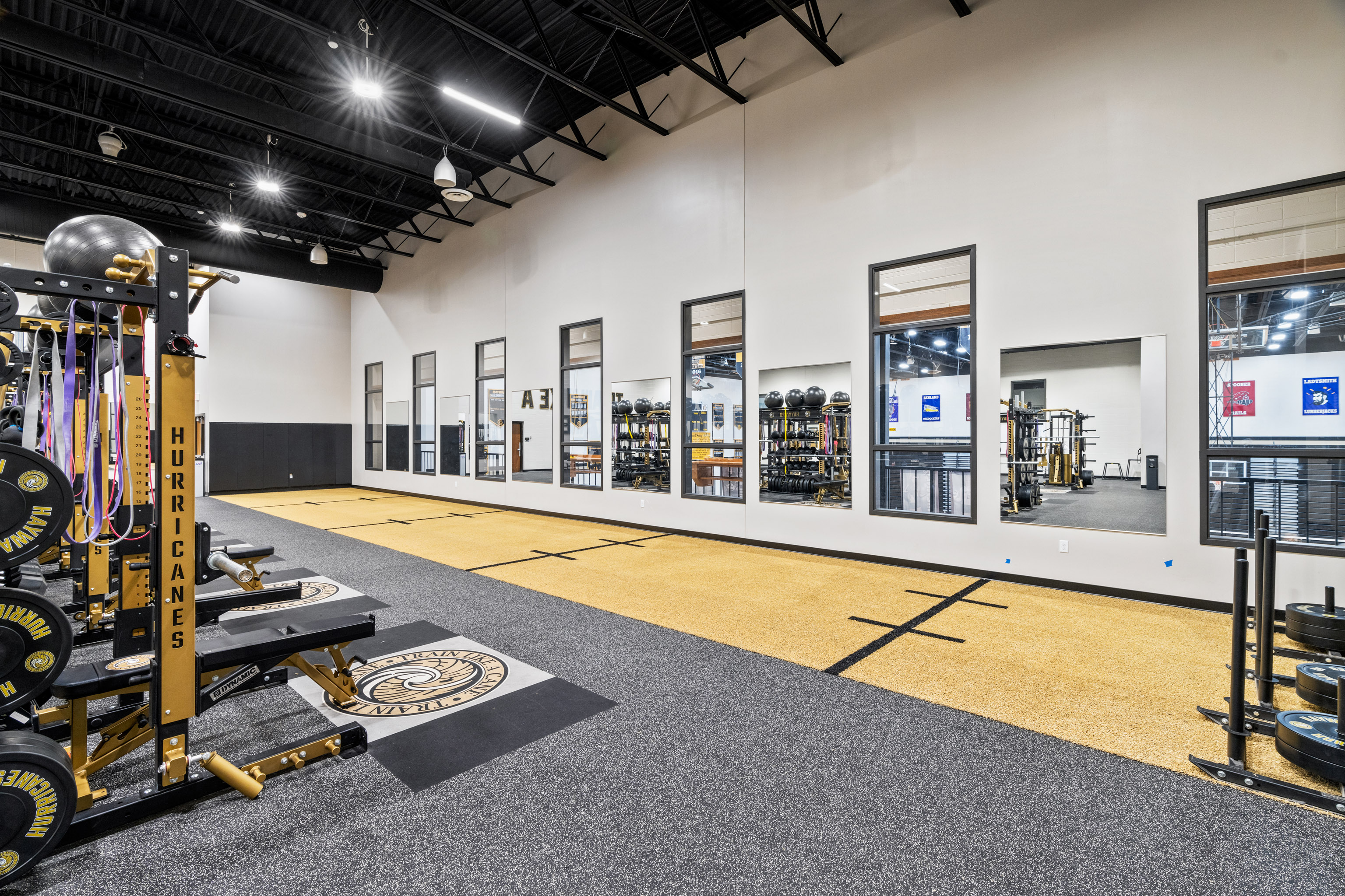 One of the major changes was the transformation of the cafeteria space in the middle school. The outdated tiered design was leveled out to create a more versatile gathering area, and new exterior windows were added to bring in natural light. The terrazzo flooring was designed to reflect the school’s Hurricane mascot, integrating school pride into the very fabric of the building.