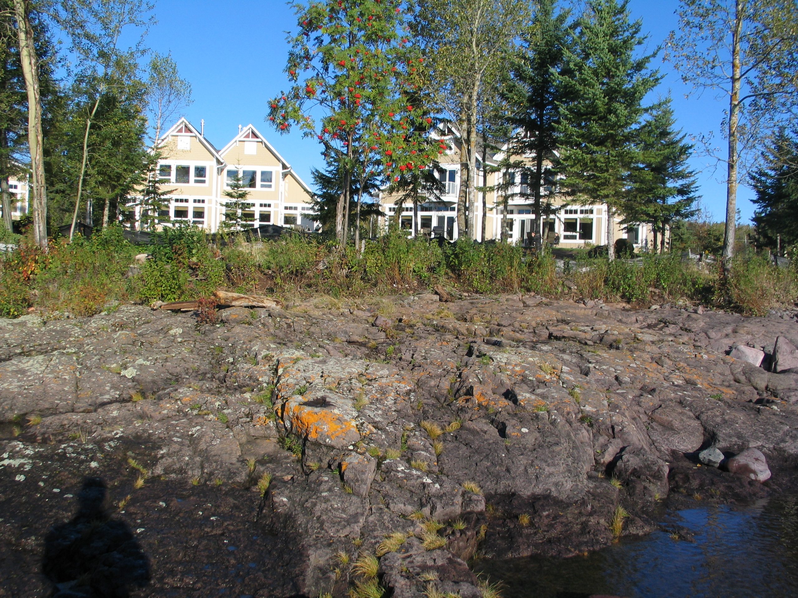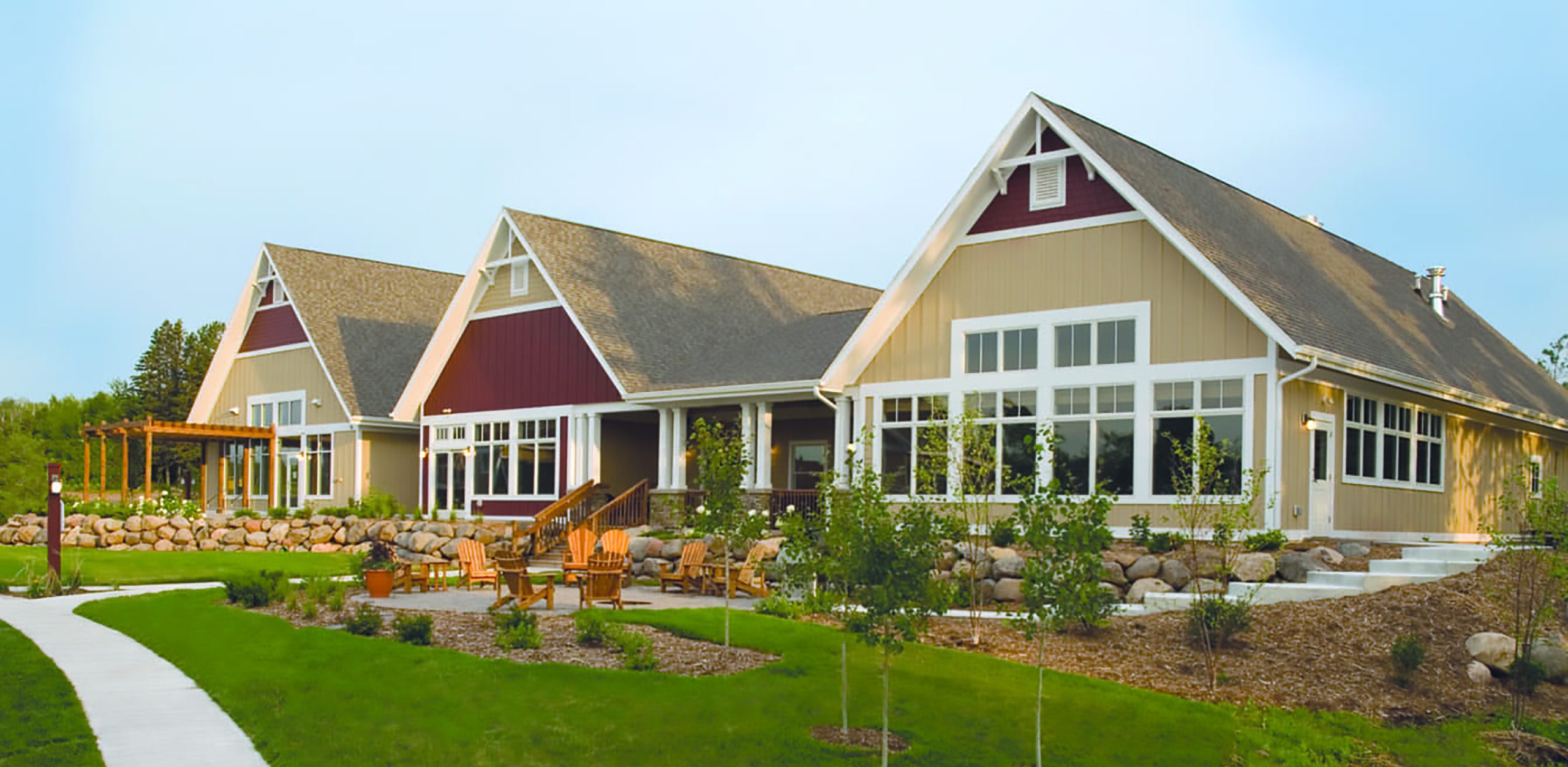 Located on 40 acres of Lake Superior shoreline, Larsmont Cottages was envisioned as a north shore vacation home destination. The resort offers side–by–side cottage dwellings nestled around the main lodge. The cottages were designed to be tall and narrow, with the roof lines cascading down between each other to maximize the visibility of Lake Superior. The exteriors, with simple lines and light colors, are reminiscent of a Norwegian fishing village. Front porches provide a space for neighborly visits while patios and decks facing the lake ensure privacy. The main lodge hosts check-in, small event spaces and the Ledge Rock Grille complete with outdoor fire pits.