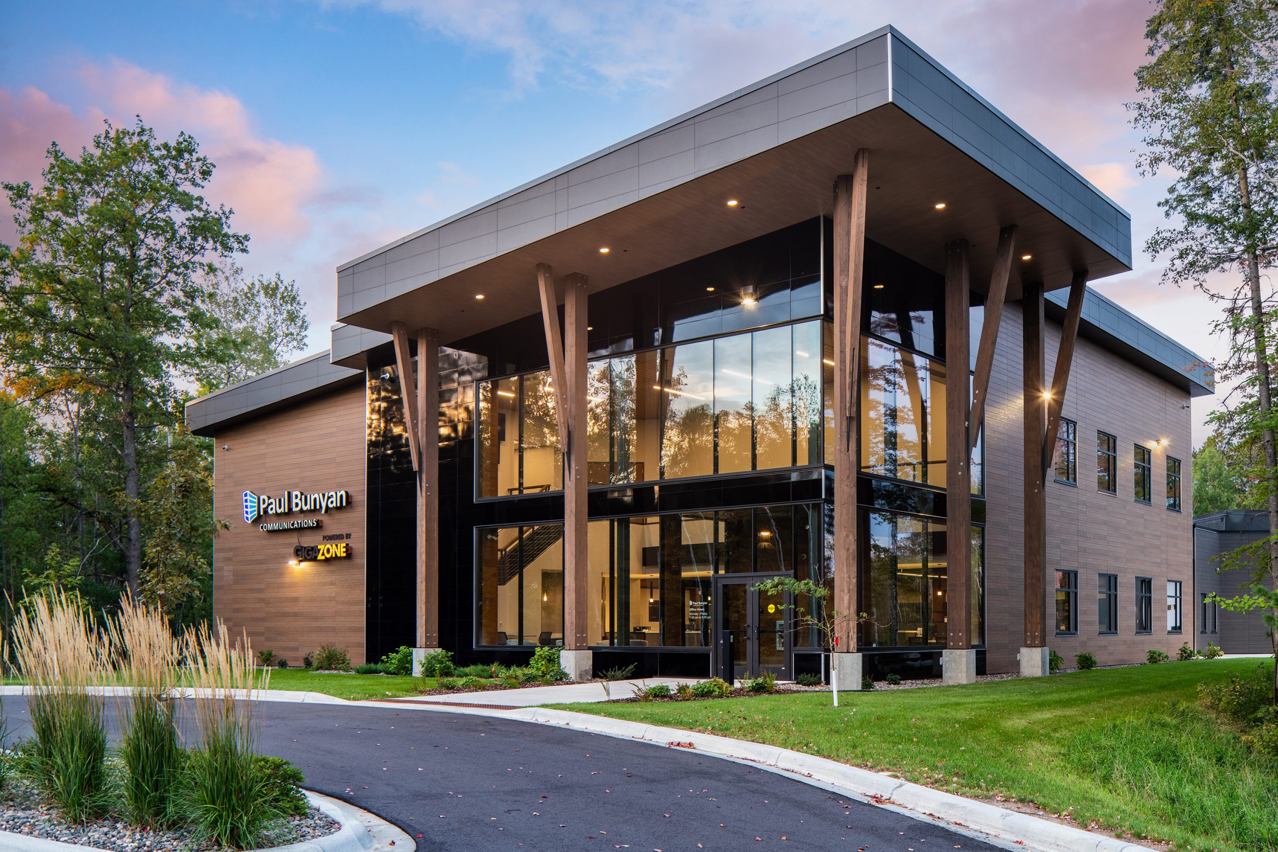 The new Paul Bunyan Communications stand-alone facility provides a professional business presence in the Grand Rapids community. A customer service center and field crew home base, bring expanded service capabilities, while preserving the natural elements of the site, promoting wellness for both staff and visitors. Through thoughtful exploration and collaboration with the Ownership team, DSGW developed a high-tech facility, respectfully nestled in the wooded site, providing access to nature, community, and technology with added opportunity for future business expansion and growth.