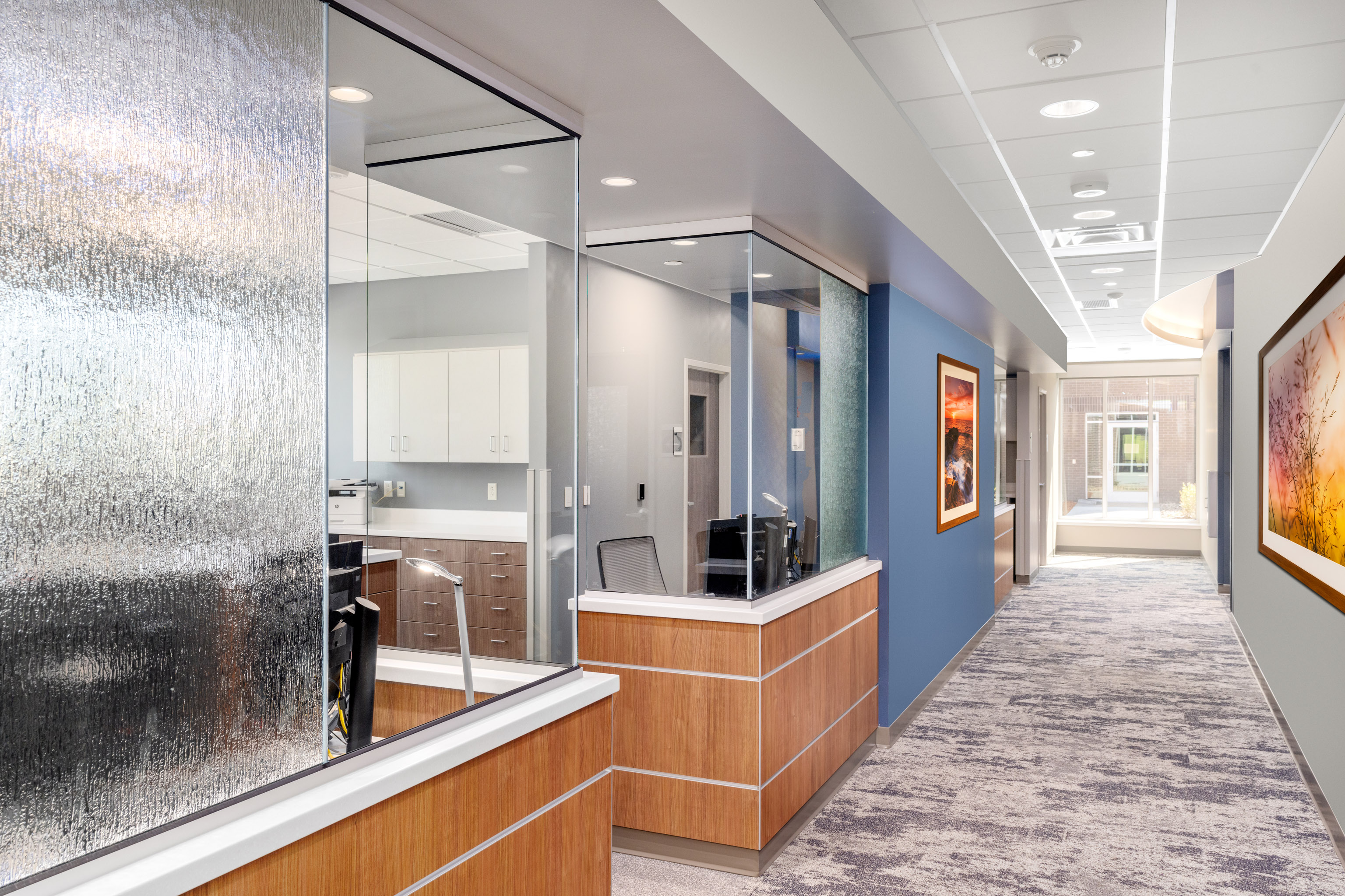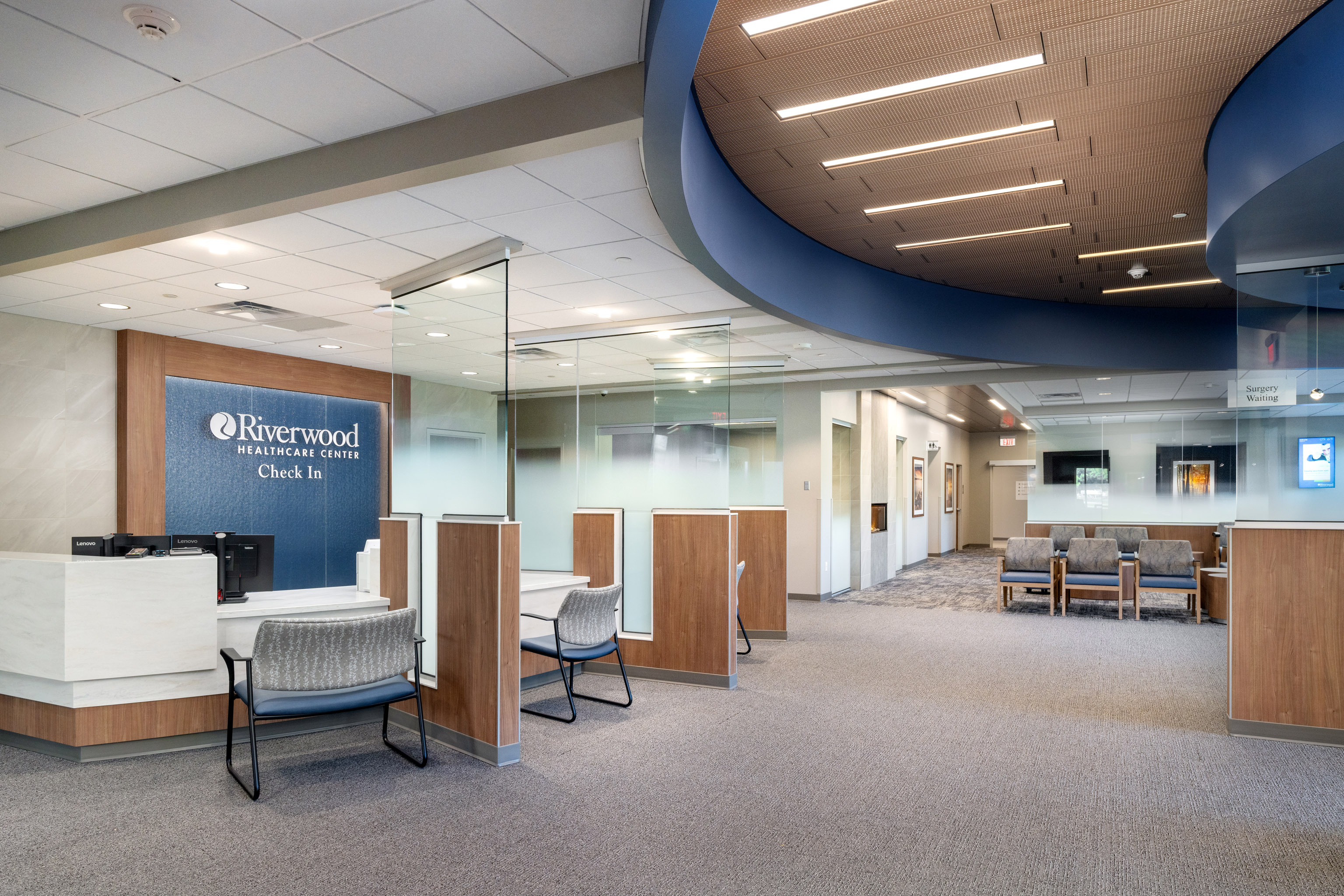 Riverwood Healthcare Center combined the clinic with the surgical center for patient ease. Riverwood Healthcare Center Clinic offers design elements that enhance the patient and staff experience. Natural daylighting and calming colors flood the space.
