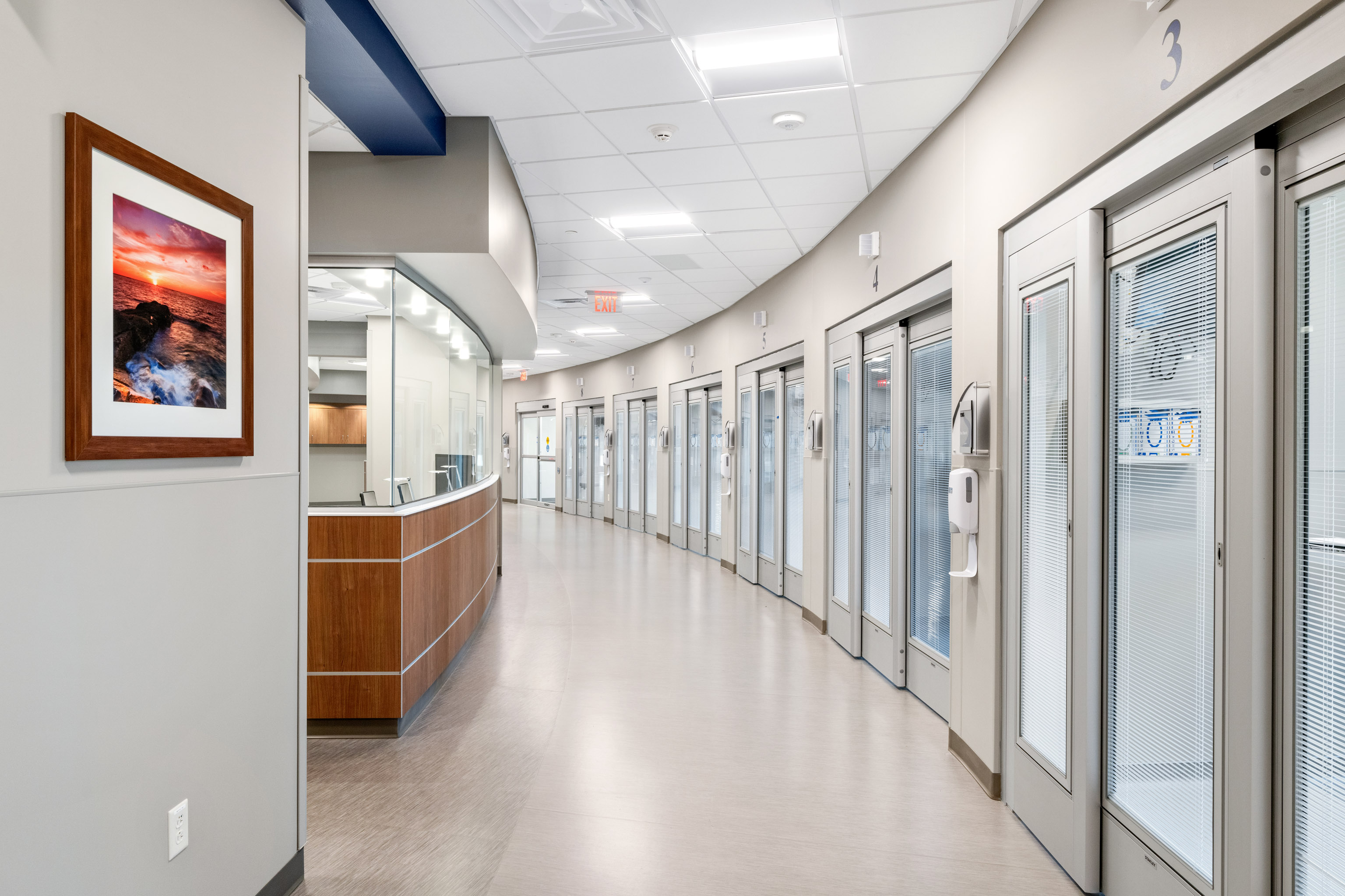 Riverwood Healthcare Center surgical corridor to patients rooms: From check-in to discharge the layout was designed to be intuitive and easy to navigate, ensuring that patients and their families never feel lost or overwhelmed. Eliminating any unnecessary stress for patients from pre-op to post-op.